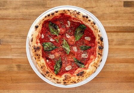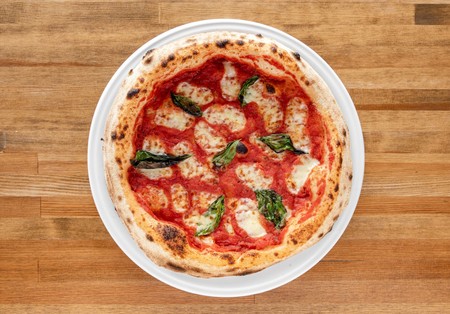 Pomidory San Marzano, mozzarella fior di latte, czosnek, cebula czerwona, cukinia, papryka, Grana Padano D.O.P.