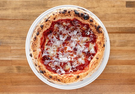 Pomidory San Marzano, mozzarella fior di latte, Nduja (pikantna kalabryjska kiełbasa), Grana Padano D.O.P.