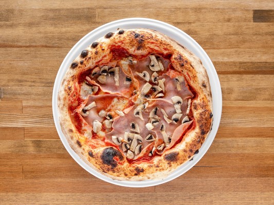Pomidory San Marzano, mozzarella fior di latte, włoska szynka gotowana, pieczarki