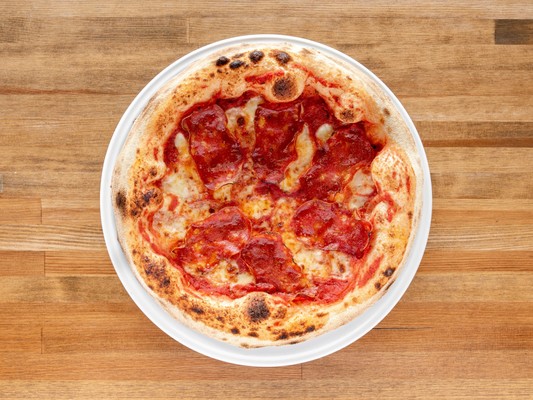 Pomidory San Marzano, mozzarella fior di latte, spianata piccante