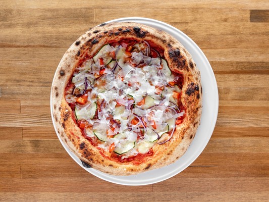 Pomidory San Marzano, mozzarella fior di latte, czosnek, cebula czerwona, cukinia, papryka, Grana Padano D.O.P.