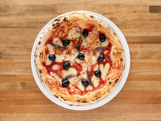 Pomidory San Marzano, mozzarella fior di latte, czosnek, anchois, czarne oliwki